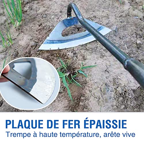 Râteau De Jardin Facile à Utiliser : Une fois la houe tendue, tirez-la simplement vers l’arrière pour désherber rapidement. Vous pouvez également fabriquer votre propre bâton en bois et l’insérer dans le manche de la houe pour étendre la longueur de la houe.
